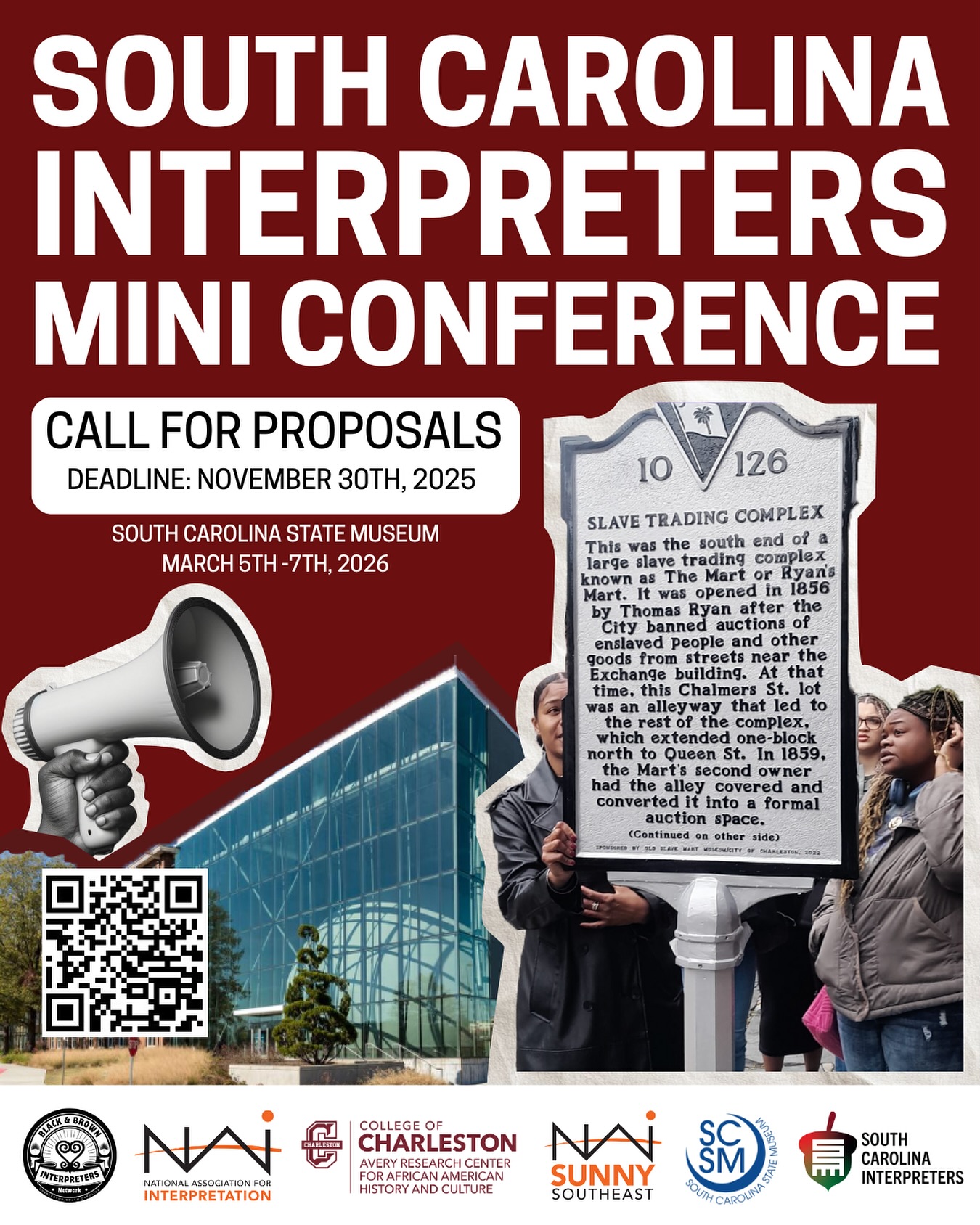 The inaugural theme for the South Carolina Interpreters Mini Conference is Unearthing 250 Years of Freedom Fighting. Speakers will cover a range of topics surrounding the theme of expanding the story of America’s fight for independence to include, analyzing the contributions of Indigenous American and African-descended people, women and others related to the Revolutionary War period, Declaration of Independence, and early post-colonial period. Sessions will consider the importance of innovative, multidisciplinary approaches, detail the evolution of interpretation methods, and determine what stories are still waiting to be told.