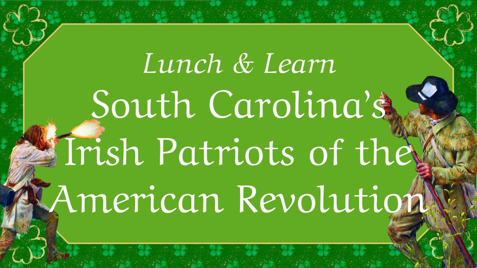 Eleven percent of the veterans who applied for pensions after the war were Irish. Twenty-nine Irish men represented SC throughout the Continental Congresses. Two signers of the Declaration of Independence and the U.S. Constitution were Irish. Bring your lunch and wear some Irish pride to take a deep dive into our Irish forefathers of the American Revolution, where everyone’s a little Irish for the day.