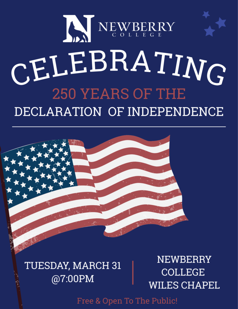Event is Newberry College's premier 250 event celebrating the signing of the Declaration of Independence. Commemoration includes color guard ceremonial posting and retiring of the US and SC flags, Student singing the National Anthem, presentations by a variety of college faculty and elected officials, reading of the Declaration of Independence and Gettysburg Address by selected […]