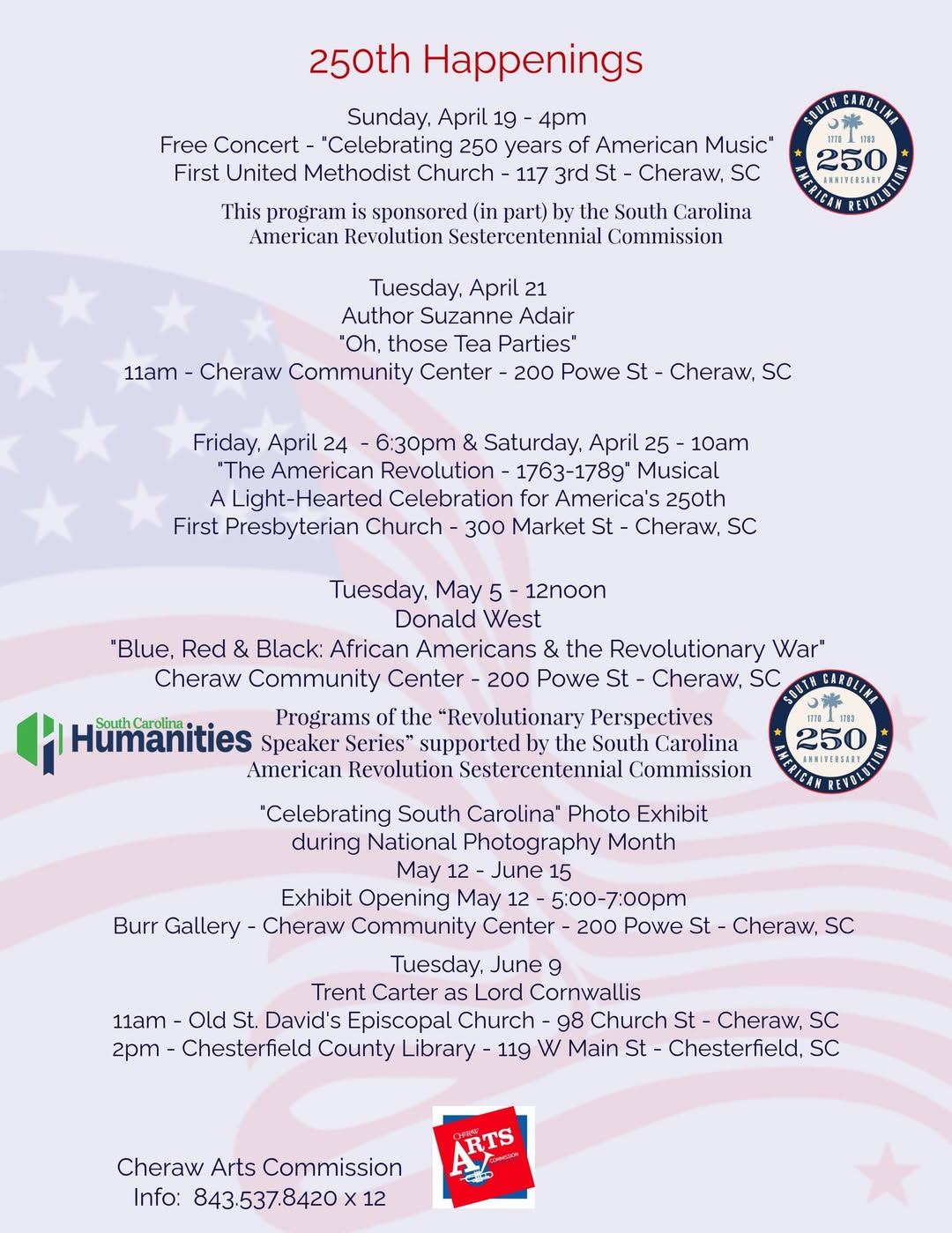 “The American Revolution in South Carolina: Blacks & Whites, Women & Men” The Horry County Museum presents a program in collaboration with Coastal Carolina University and the South Carolina 250th Commission on Saturday, April 18th, 2026 at 1 PM. Woody Holton, professor of history at the University of South Carolina, will speak on the American […]